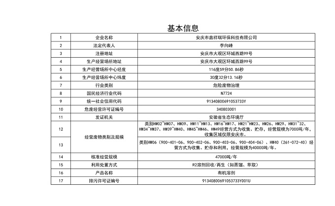 • 危廢收集、貯存(限安慶市范圍)