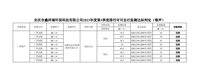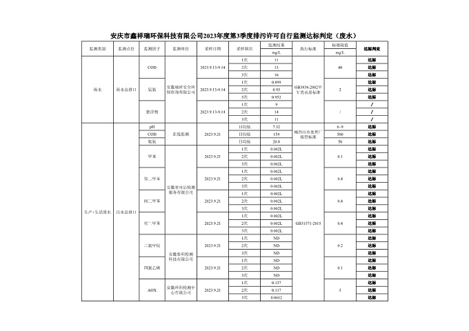 安慶市鑫祥瑞環(huán)??萍加邢薰?023年第3季度排污許可自行監(jiān)測(cè)公開(kāi)
